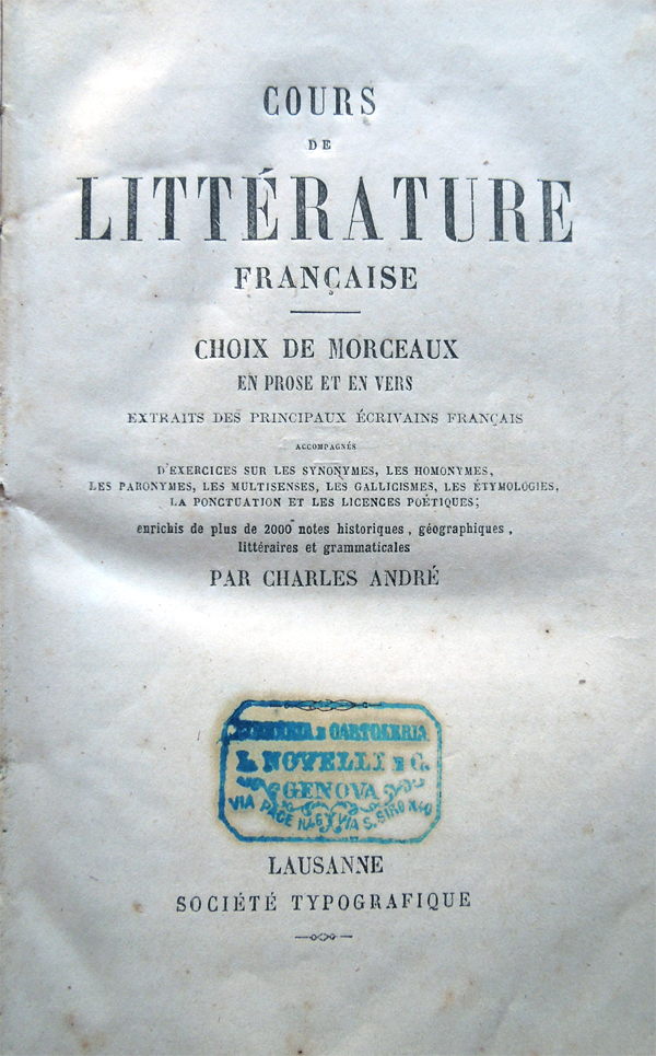 Losanna, Société Typografique, 1858.