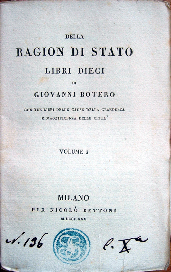Della ragion di stato libri dieci con tre libri delle cause della grandezza delle città