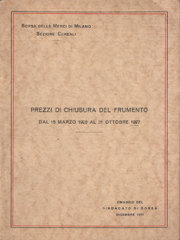 Prezzi di chiusura del frumento dal 15 marzo 1926 al 31 ottobre 1927. Omaggio del Sindacato di Borsa, Dicembre 1927