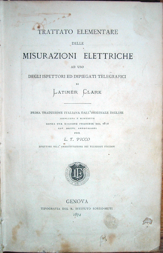Trattato elementare delle misurazioni elettriche ad uso degli ispettori ed impiegati telegrafici. Prima traduzione italiana dall'originale inglese ampliata e riveduta sopra una edizione francese del 1872 con brevi annotazioni per L. T. Picco