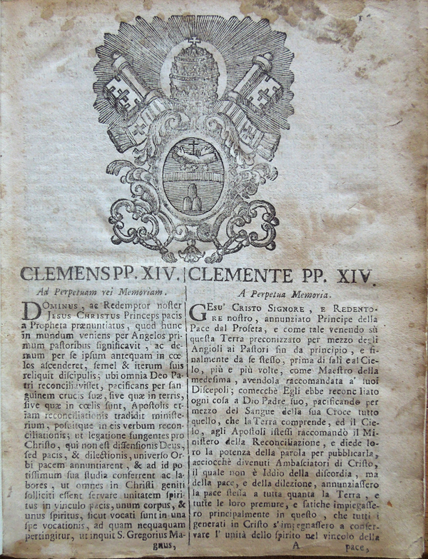 Dominus, ac Redemptor noster Jesus Christus Princeps pacis a Propheta praenuntiatus ... - Gravissimis ex causis nuper Nos per alias nostras in simili forma Brevis ... - Cum perpenderint Eminentissimi PP. particularis Congregationis ...
