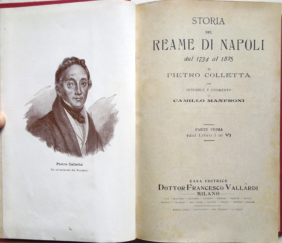 Storia del Reame di Napoli dal 1734 al 1825 di Pietro Colletta con introduz. e commento di Camillo Manfroni. Parte prima [- seconda]