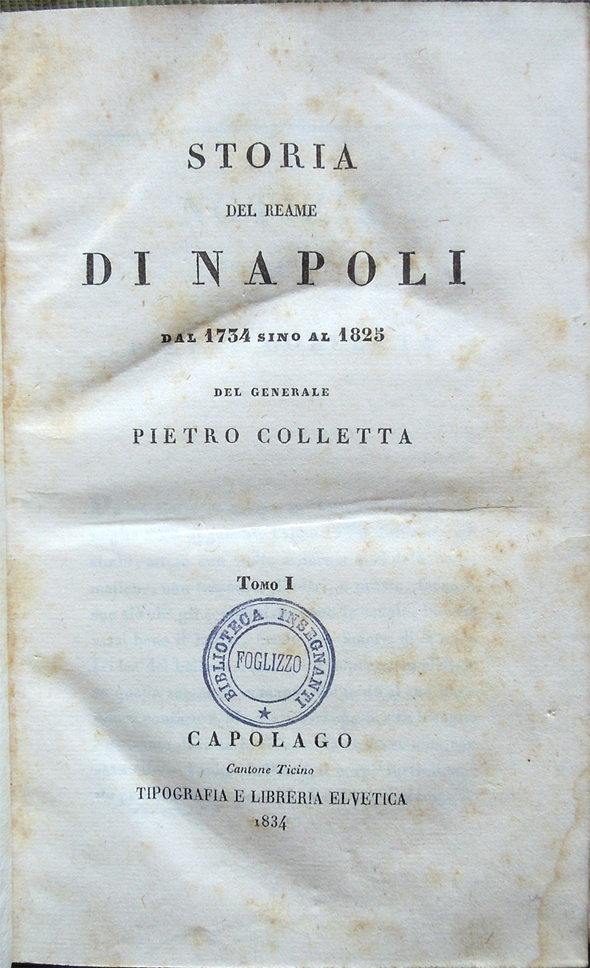Storia del Reame di Napoli dal 1734 sino al 1825 del generale Pietro Colletta. Tomo I [-II]