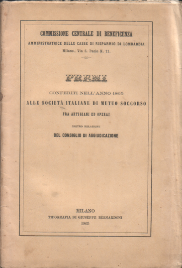 Premi conferiti nell'anno 1865 alle Società Italiane di Mutuo Soccorso fra artigiani ed operai dietro relazione del Consiglio di aggiudicazione
