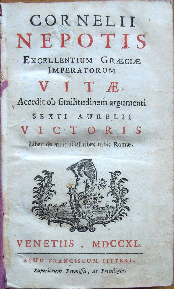 Cornelii Nepotis Excellentium Graeciae Imperatorum vitae. Accedit ob similitudinem argumenti Sexti Aurelii Victoris Liber de viris illustribus urbis Romae