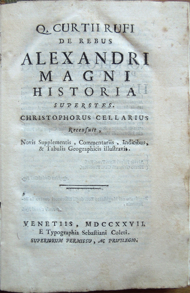 De rebus Alexandri Magni Historia superstes. Christophorus Cellarius recensuit, Novis Supplementis, Commentariis, Indicibus et Tabulis Geographicis illustravit