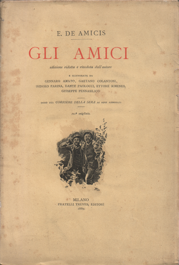 Gli amici. Edizione ridotta e riveduta dall'autore e illustrata da Gennaro Amato, Gaetano Colantoni, Isidoro Farina, Dante Paolocci, Ettore Ximenes, Giuseppe Pennasilico. Dono del Corriere della Sera ai suoi abbonati. 10° migliaio