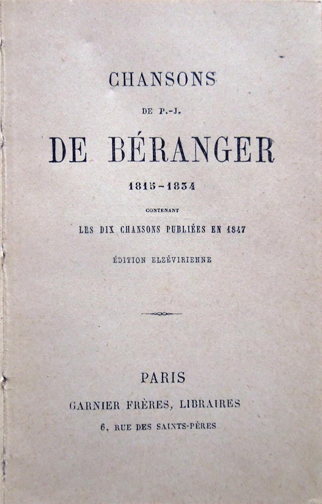 Chansons de P.-J. de Béranger 1815-1834. Contenant les dix chansons publiées en 1847. Édition Elzeviriénne