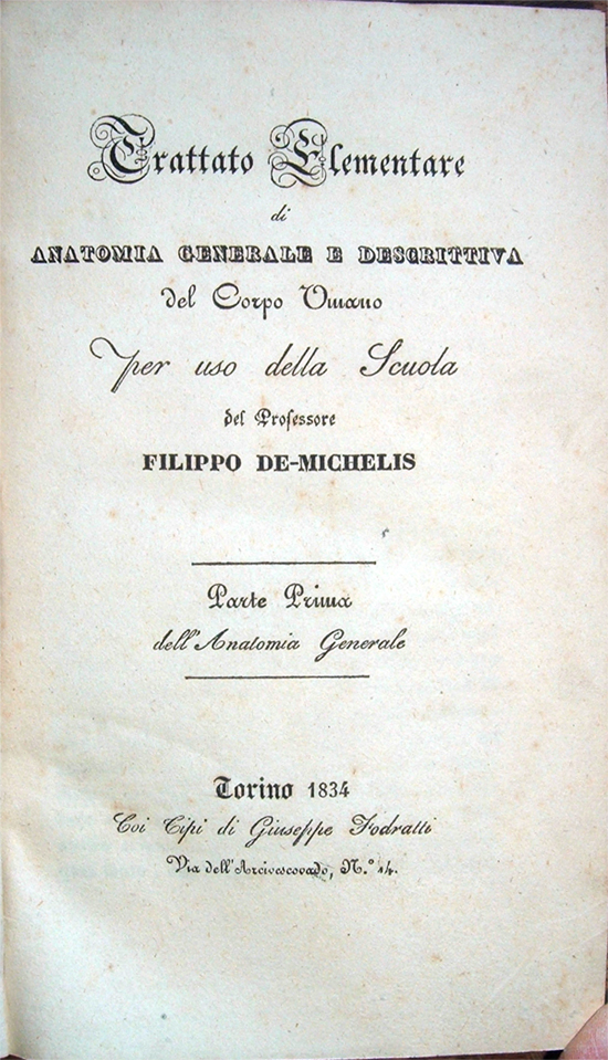 Trattato Elementare di Anatomia generale e descrittiva del corpo umano per uso della Scuola del Professor Filippo De-Michelis
