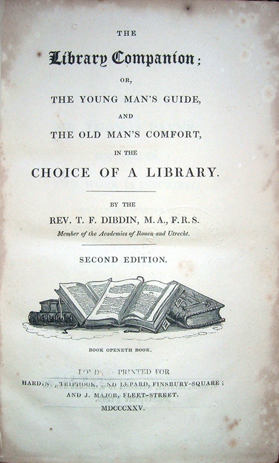 The Library Companion or the young man's guide and the old man's comfort in the choice of a library, by the rev. T. F. Dibdin, M. A., F. R. S., Member of the Academies of Rouen and Utrecht. Second edition