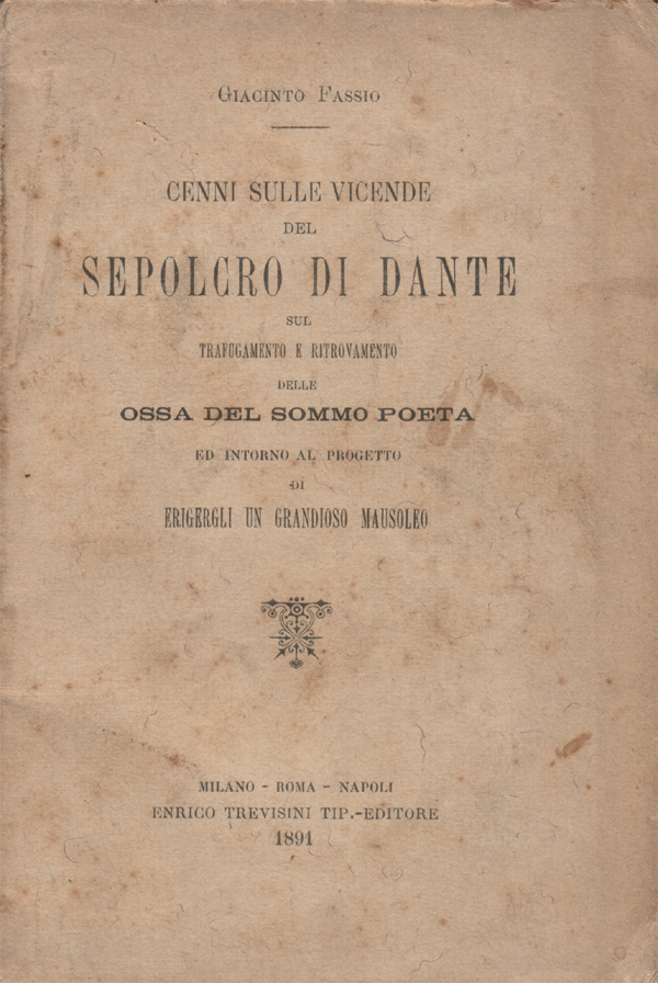 Cenni sulle vicende del sepolcro di Dante, sul trafugamento e ritrovamento delle ossa del sommo poeta ed intorno al progetto di erigergli un grandioso mausoleo