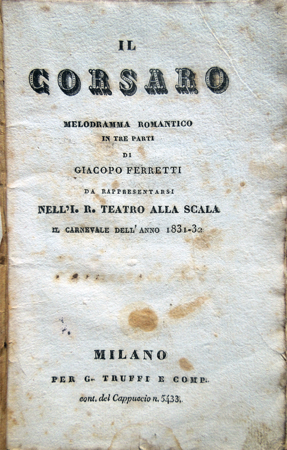 Il corsaro. Melodramma romantico in tre parti di Giacopo Ferretti, da rappresentarsi nell'I. R. Teatro alla Scala il Carnevale dell'anno 1831-32