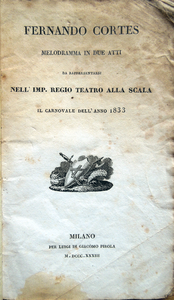 Fernando Cortes. Melodramma in due atti da rappresentarsi nell'Imp. Regio Teatro alla Scala il Carnovale dell'anno 1833