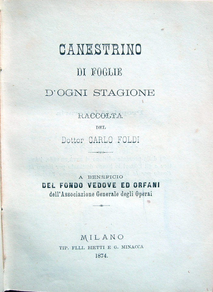 Canestrino di foglie d'ogni stagione. Raccolta del Dottor Carlo Foldi. A beneficio del Fondo Vedove ed Orfani dell'Associazione Generale degli Operai