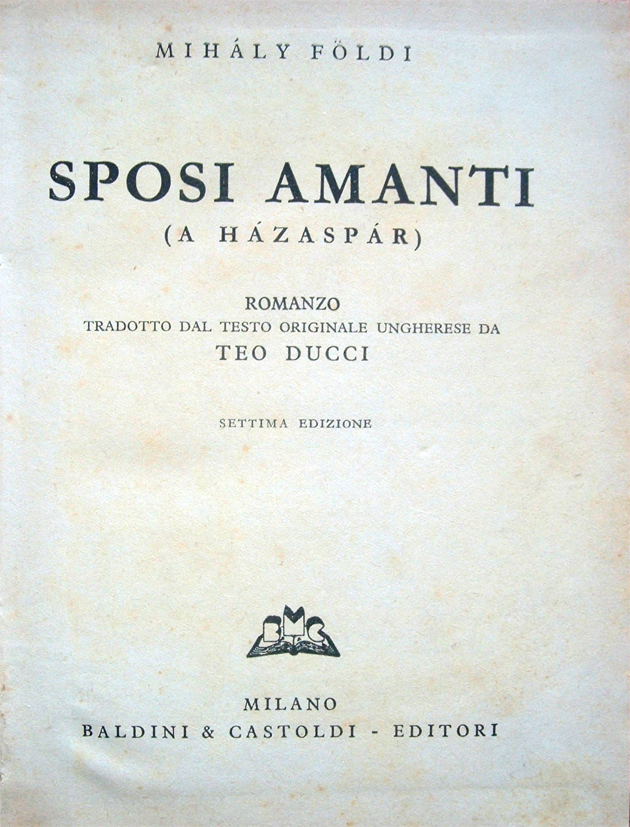 Sposi amanti (A házaspár). Romanzo. Tradotto dal testo originale ungherese da Teo Ducci. Settima edizione